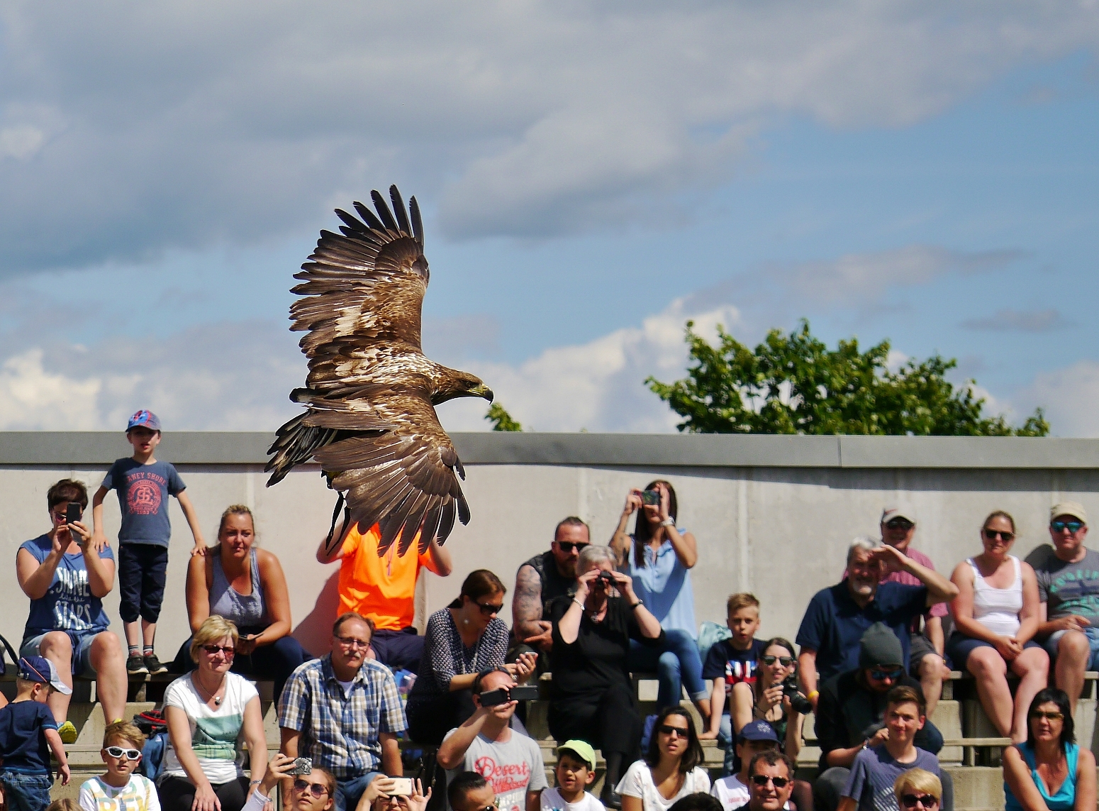 In a demonstration lasting about 45 minutes, you get the chance to experience free-flying, majestic birds of prey in the up-current of the famous Landskron castle. After some breathtaking flights, the birds then return to the handler who is standing right in front of you, and which is when the behaviour and habits of these endangered species is explained in detail. Eagle shows take place two or three times a day during the summer months. Special demonstrations for groups are available with prior reservation. The primary aim of the eagle show is to let people have closer contact with birds of prey and owls and to share some important facts about them. Having the opportunity to watch the birds swoop past your head, soar sky high and then immediately begin a fierce dive for the bait attached to a moving cable system is a truly exhilarating experience.